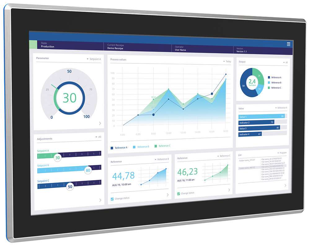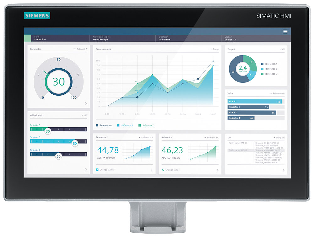 操作员设备和工程软件的优异结合。无论操作人员在何处操作机器和设备来执行任务 A 至 Z ,都需要配备监控和操作员控制用的设备。为特定任务选配合适的设备,这一点不难做到。面临的挑战是寻求一种面向未来的灵活解决方案,这种解决方案可以集成到更高的网络中,也可以满足对透明度和数据提供日益增长的需求。正是由于性能优异硬件的交相辉映,即使是超出标准应用和 HMI 软件、工程软件以及运行版软件范畴的需求,使得 SIMATIC HMI 成为您正在寻找的机器可视化解决方案供应商。